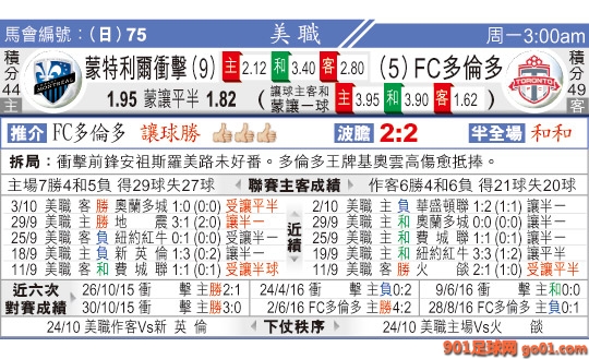 > 03:00 美職聯 蒙特利爾衝擊:FC多倫多