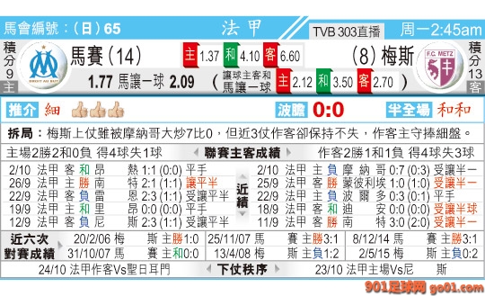 > 02:45 法甲 馬賽:梅斯