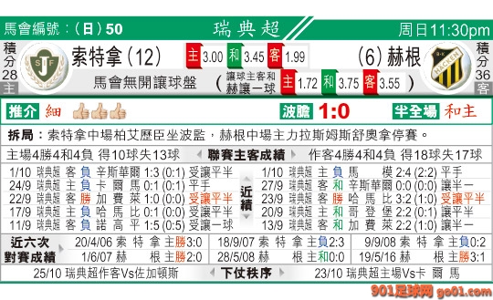 23:30 瑞超 艾夫斯堡:希爾星堡
